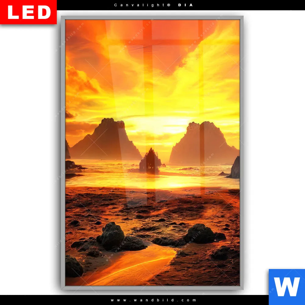 Canvalight® DIA Leuchtbild | Magische Steinlandschaft im Meer | Hochformat