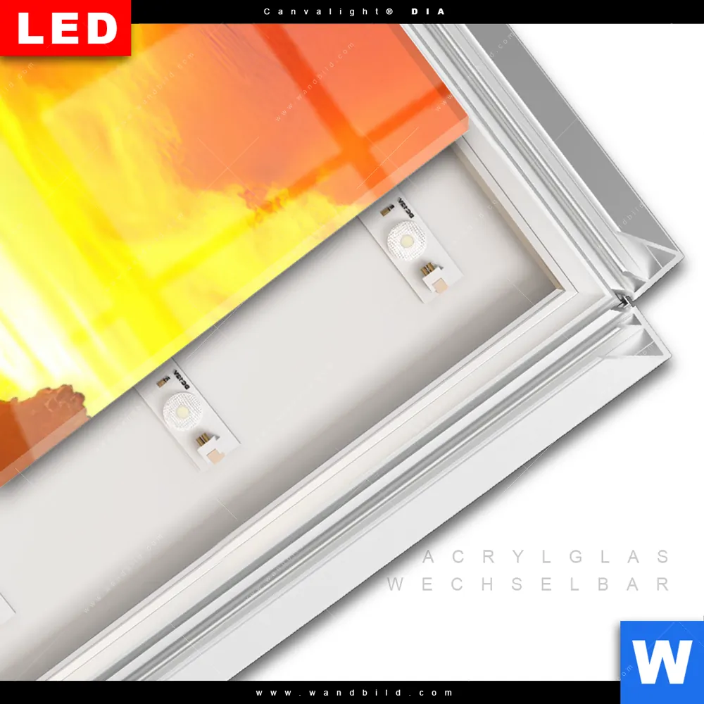 LED-Glasbild mit austauschbarem Acrylglas-Druck (Wechselbild)
