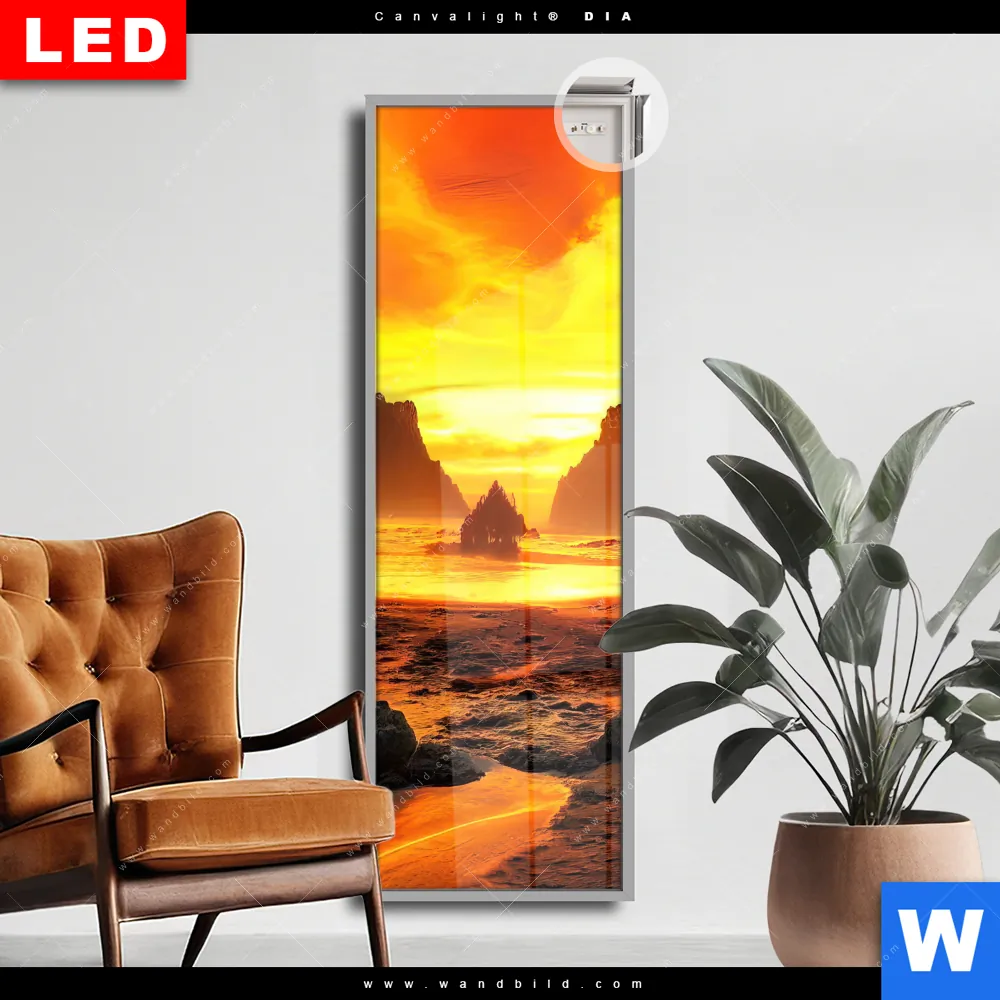 Canvalight® DIA Leuchtbild | Magische Steinlandschaft im Meer | Schmal