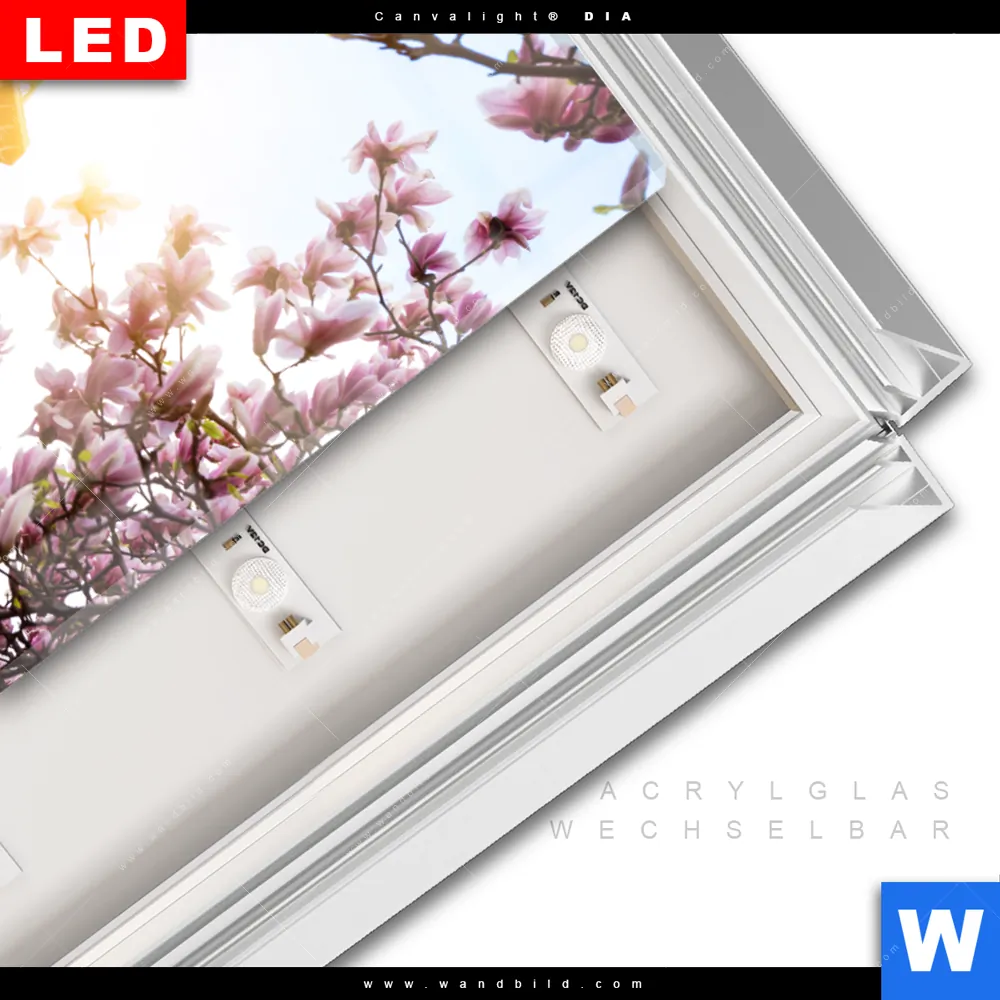 LED-Glasbild mit austauschbarem Acrylglas-Druck (Wechselbild)