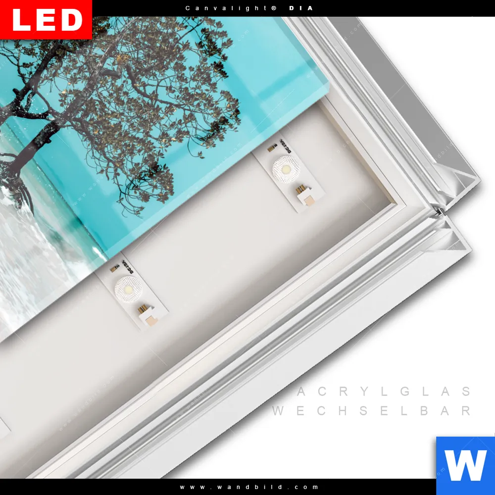 LED-Glasbild mit austauschbarem Acrylglas-Druck (Wechselbild)