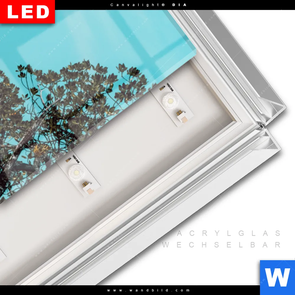 LED-Glasbild mit austauschbarem Acrylglas-Druck (Wechselbild)
