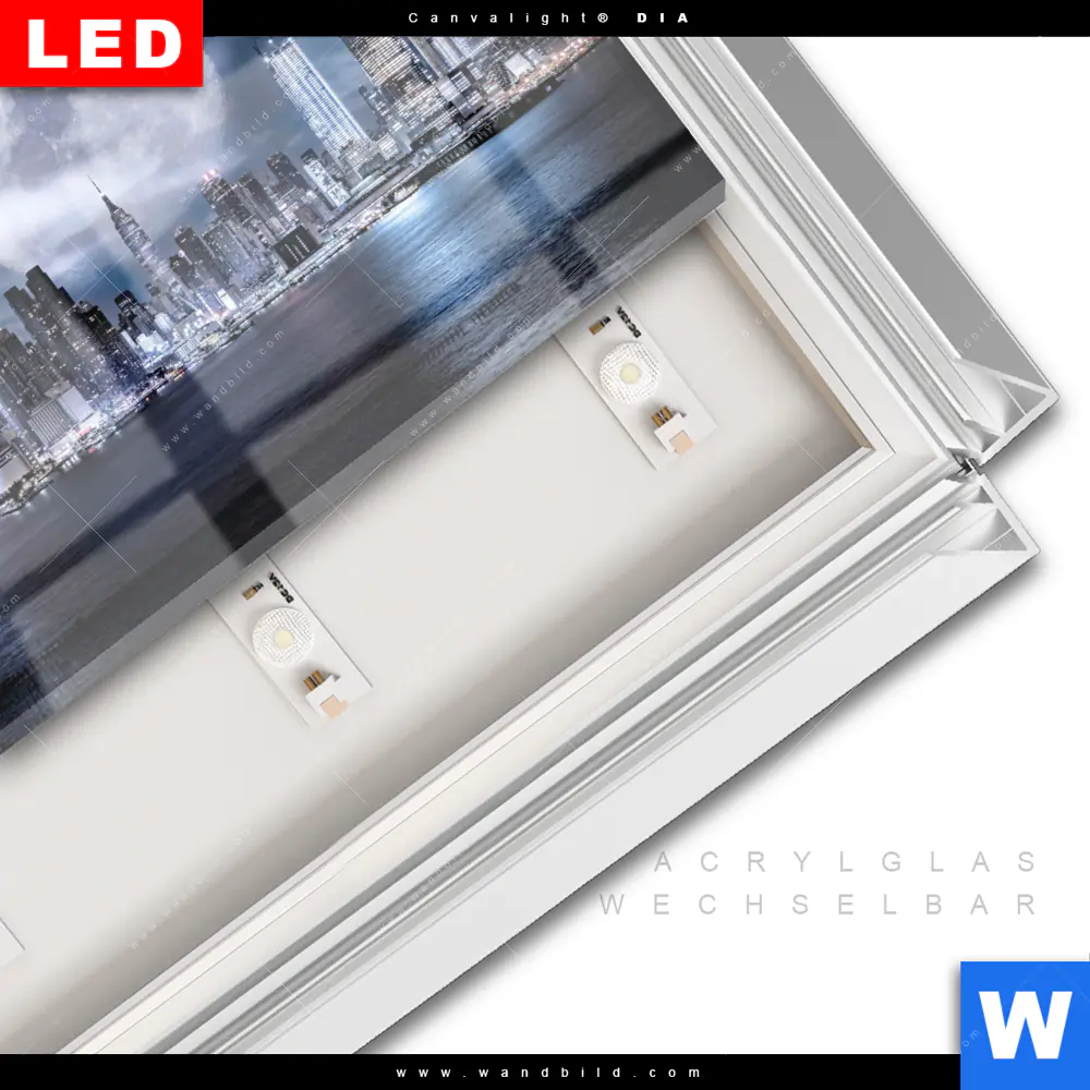 LED-Glasbild mit austauschbarem Acrylglas-Druck (Wechselbild)