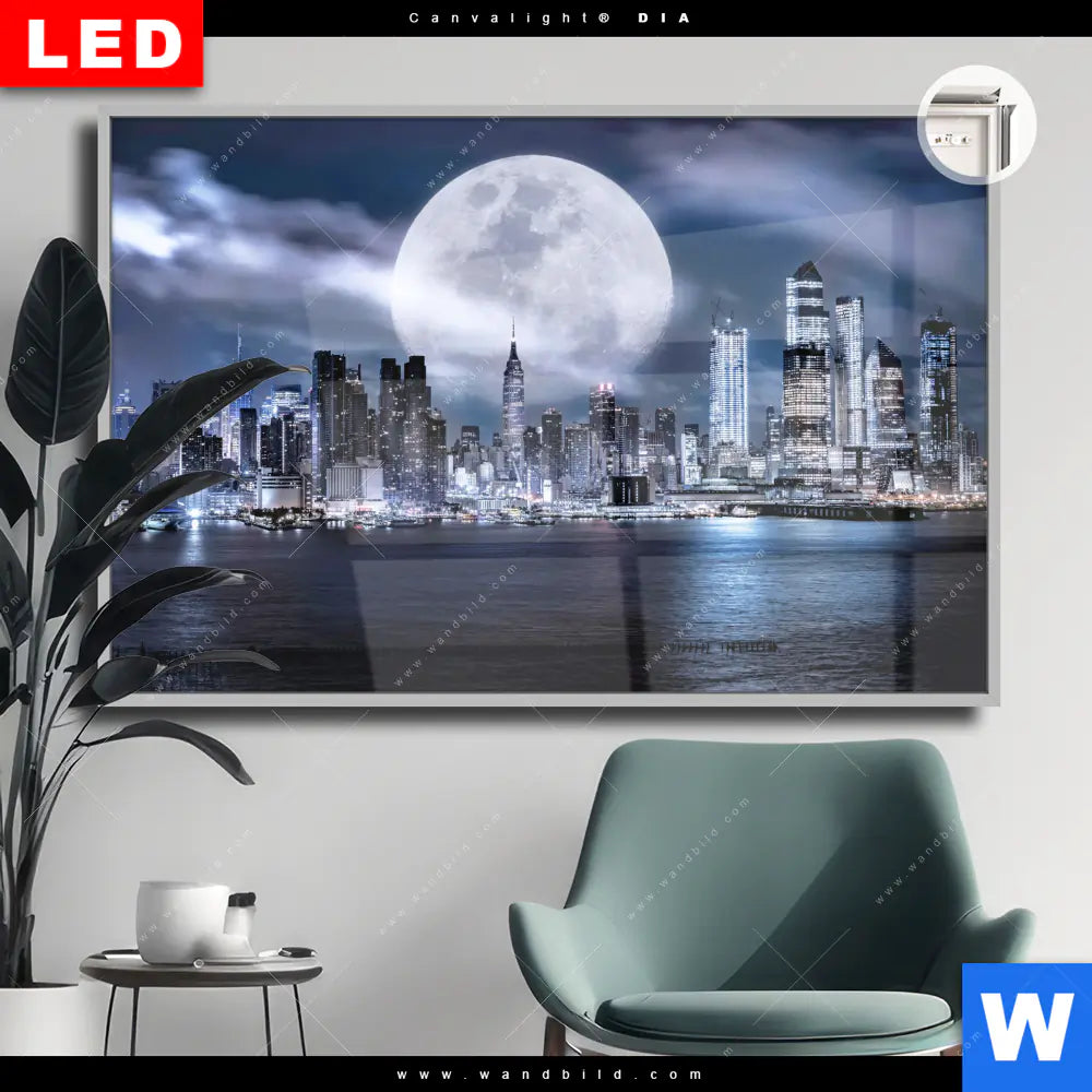 Canvalight® DIA Leuchtbild | Manhattan - Giganten im Silberlicht | Querformat