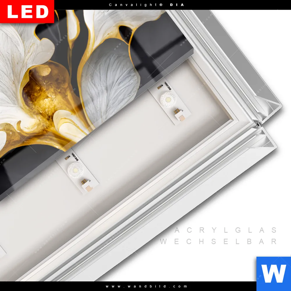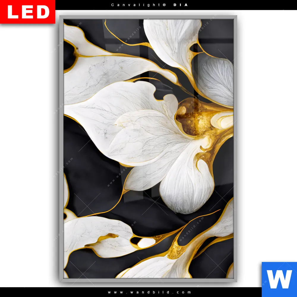 Canvalight® DIA Leuchtbild | Marmor Blüten in weiß & gold | Hochformat