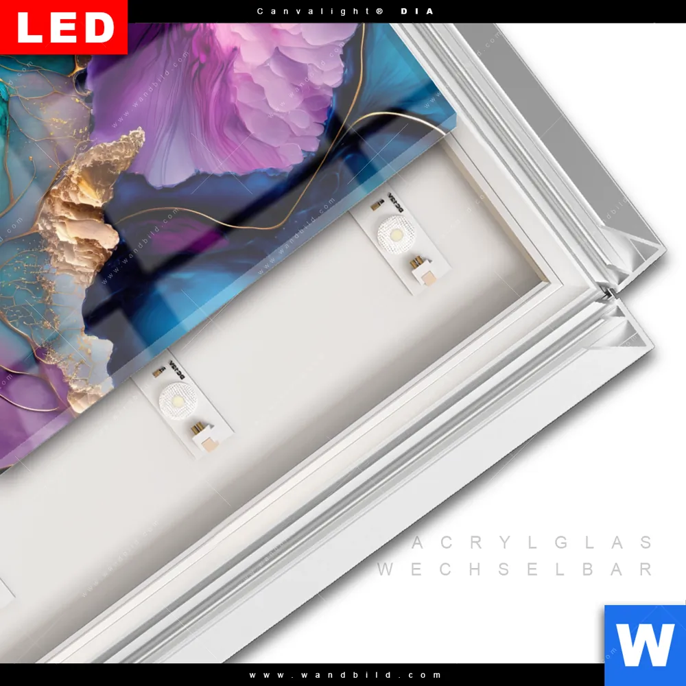 LED-Glasbild mit austauschbarem Acrylglas-Druck (Wechselbild)