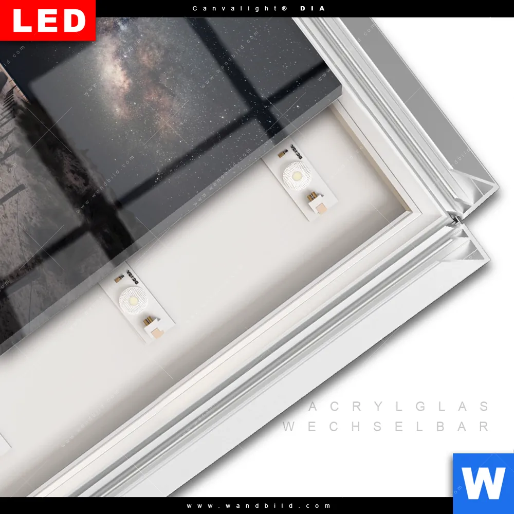 LED-Glasbild mit austauschbarem Acrylglas-Druck (Wechselbild)