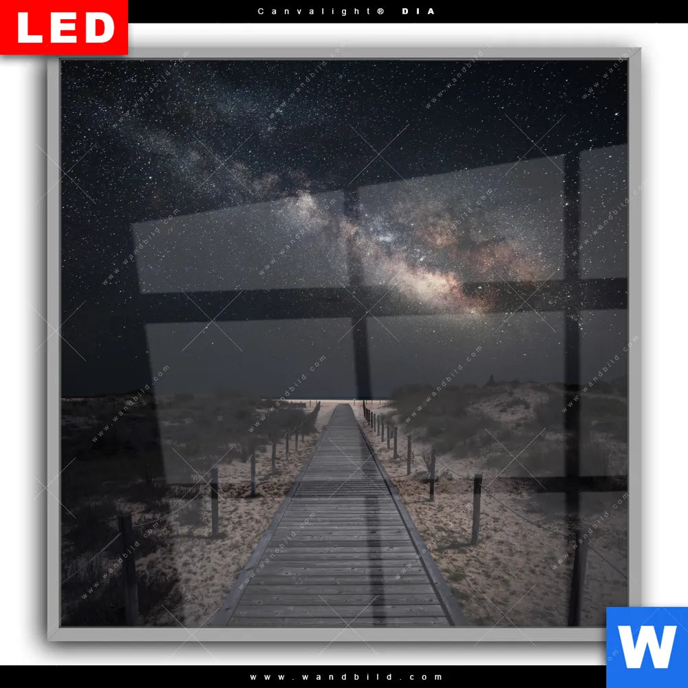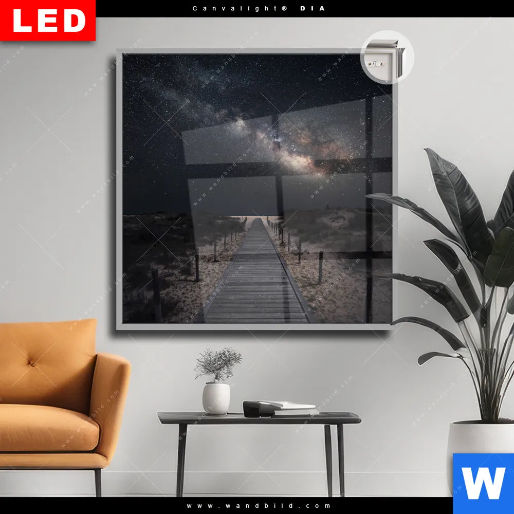 Canvalight® DIA Leuchtbild | Milchstraße über einem Holzweg | Quadrat