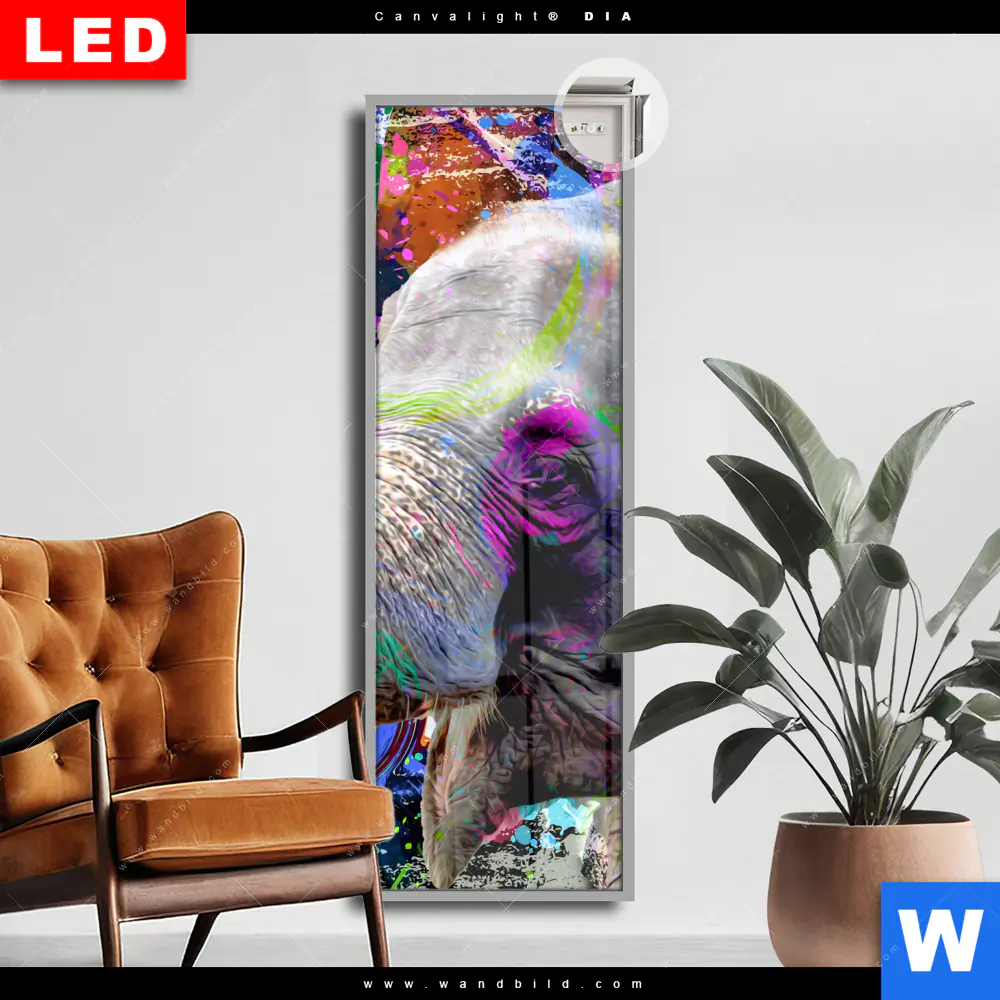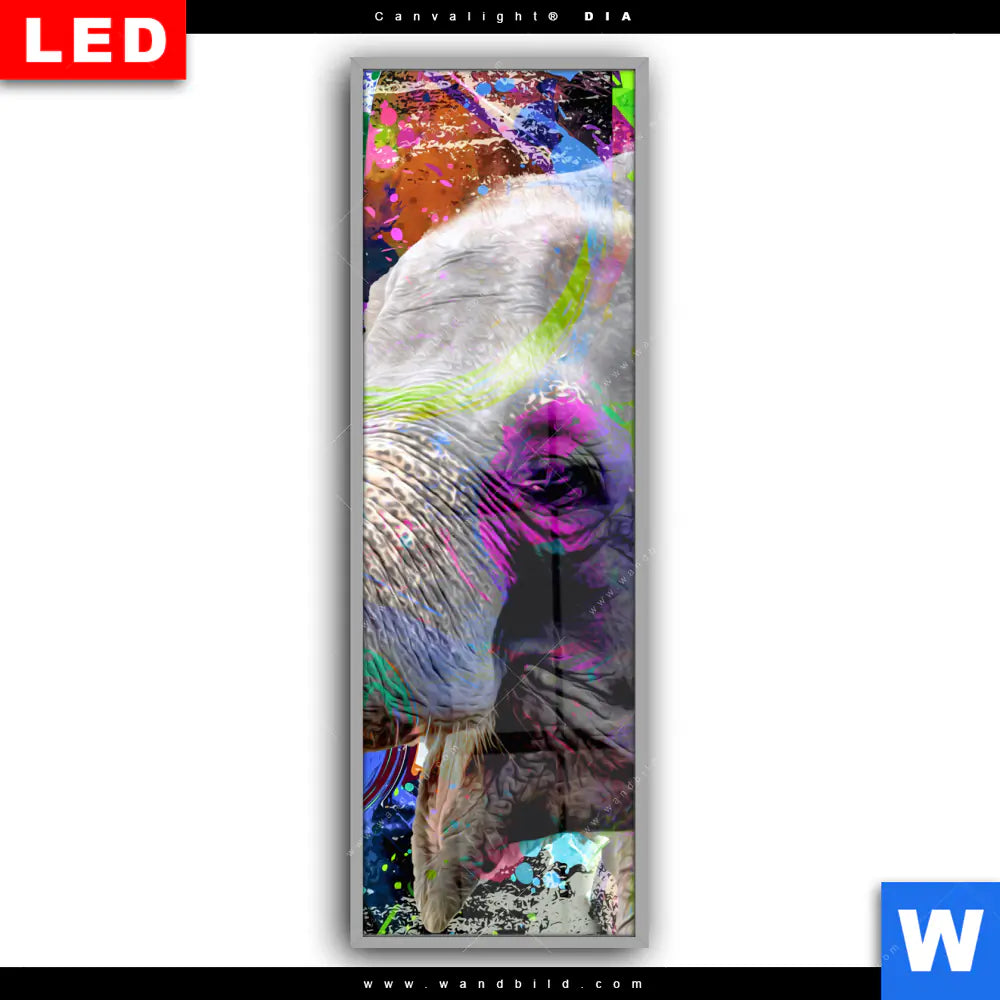 Canvalight® DIA Leuchtbild | Moderner bunter Elefant No. 2 | Schmal