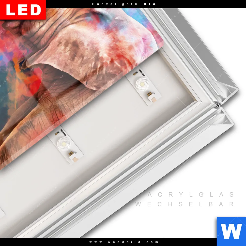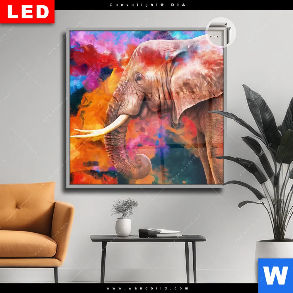 Canvalight® DIA Leuchtbild | Moderner Bunter Elefant | Quadrat