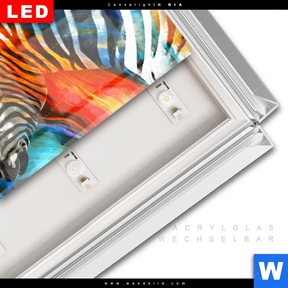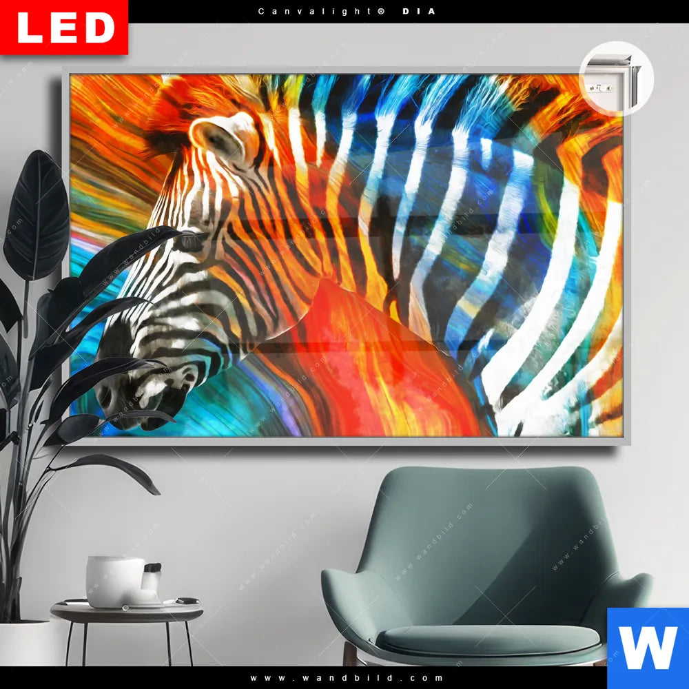 Canvalight® DIA Leuchtbild | Modernes Buntes Zebra | Querformat
