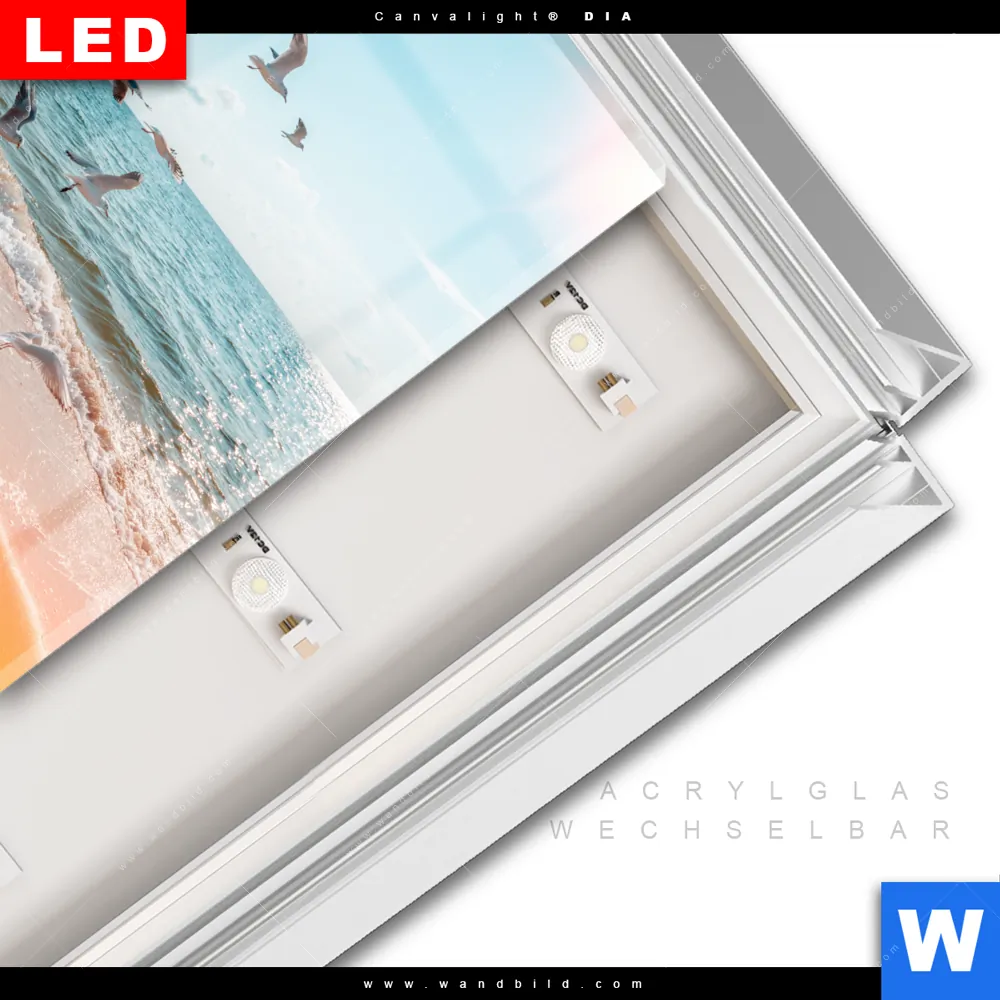 LED-Glasbild mit austauschbarem Acrylglas-Druck (Wechselbild)