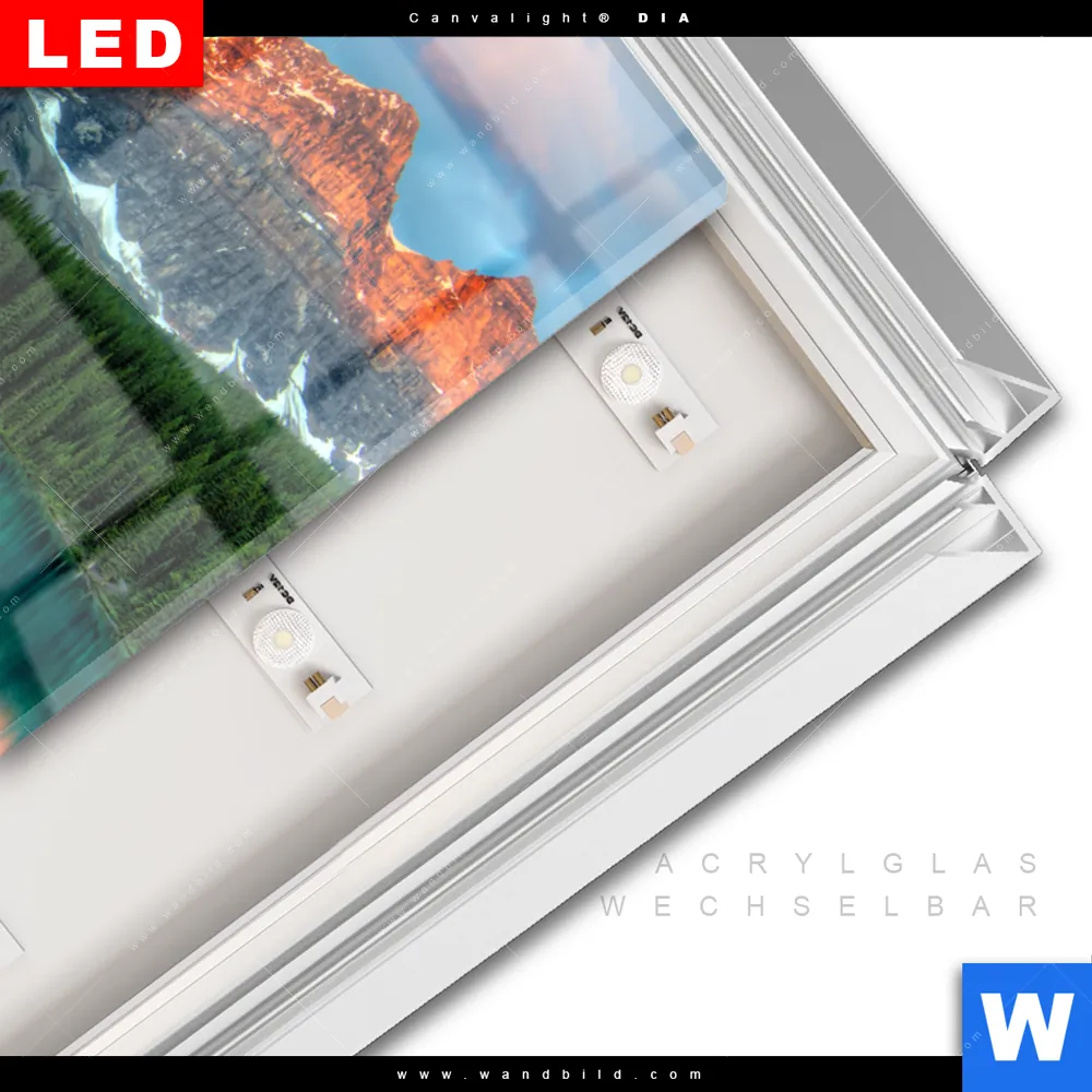 LED-Glasbild mit austauschbarem Acrylglas-Druck (Wechselbild)