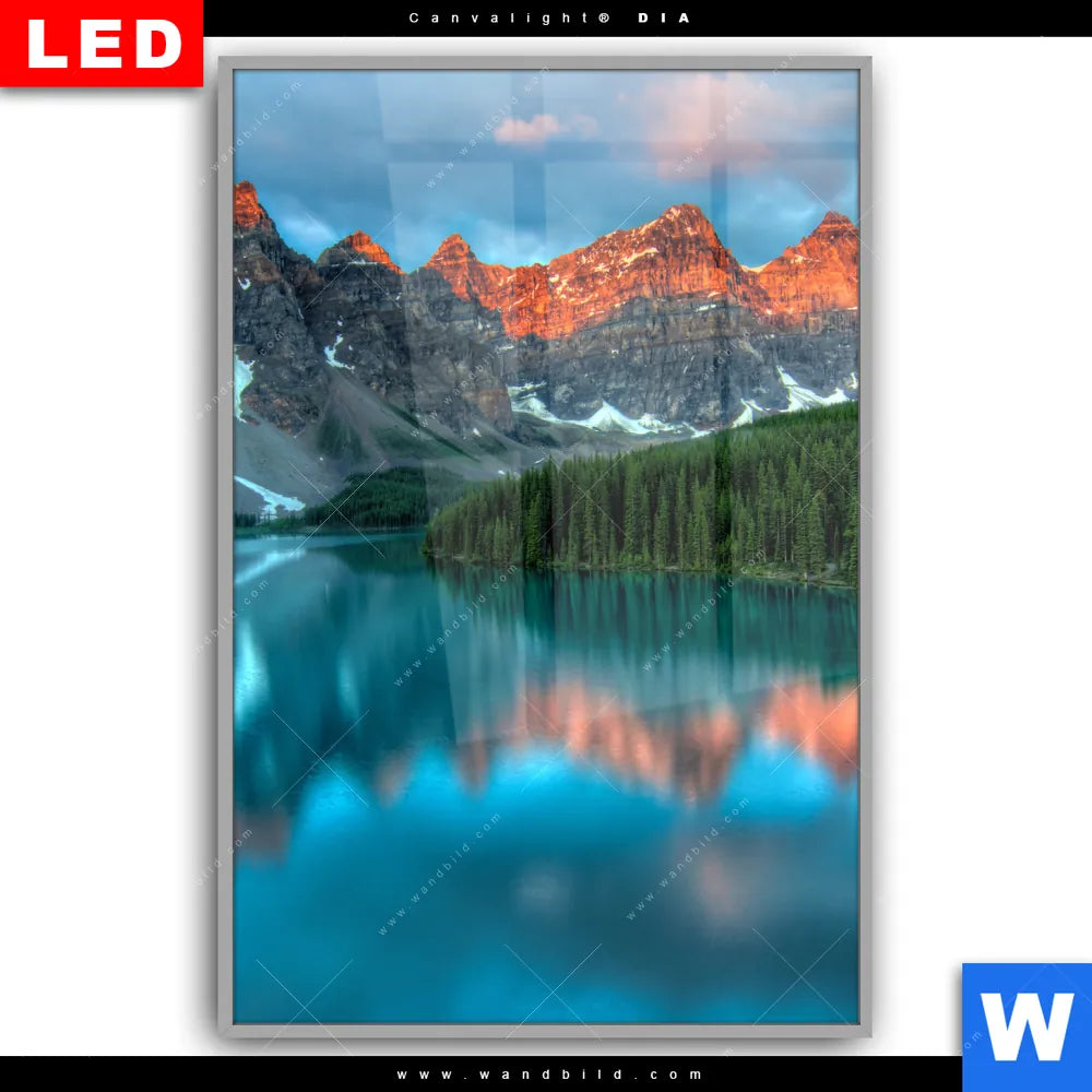 Canvalight® DIA Leuchtbild | Moränensee Sonnenaufgang | Hochformat