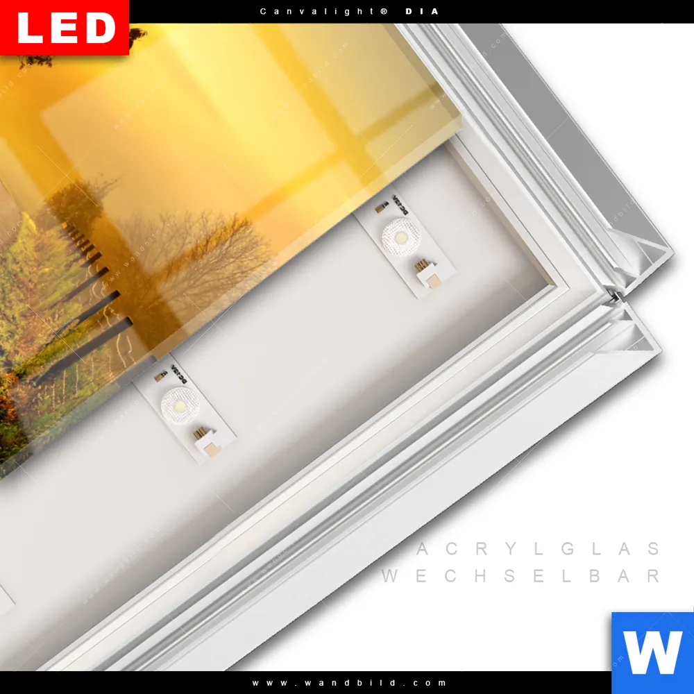 LED-Glasbild mit austauschbarem Acrylglas-Druck (Wechselbild)