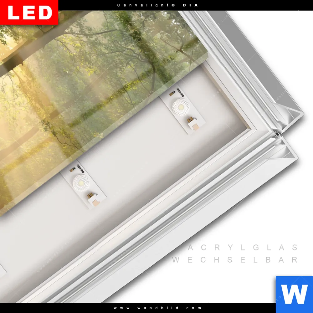 LED-Glasbild mit austauschbarem Acrylglas-Druck (Wechselbild)