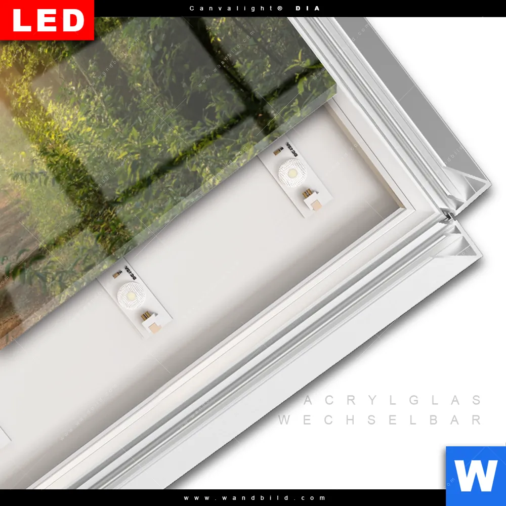 LED-Glasbild mit austauschbarem Acrylglas-Druck (Wechselbild)