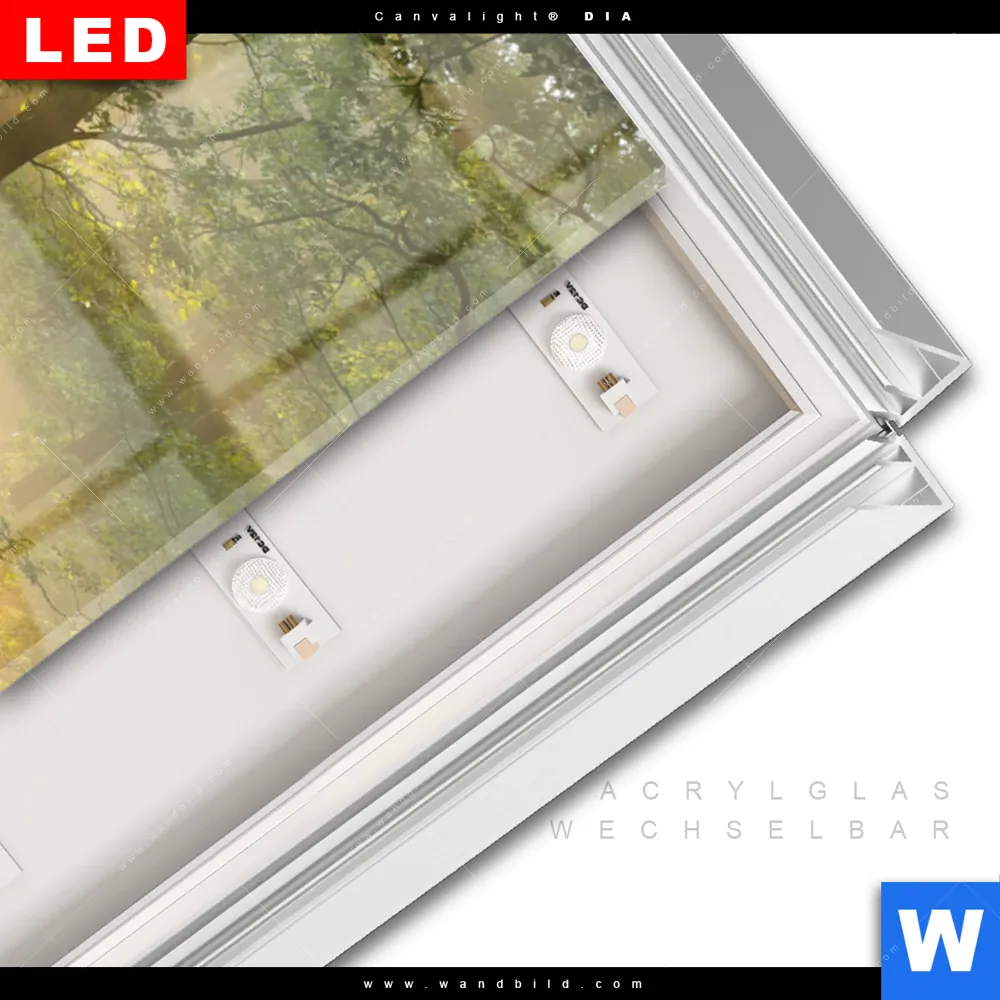 LED-Glasbild mit austauschbarem Acrylglas-Druck (Wechselbild)