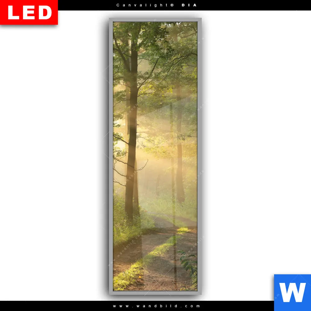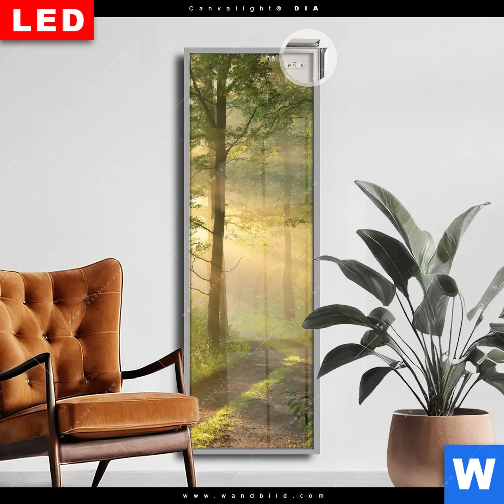 Canvalight® DIA Leuchtbild | Morgenspaziergang im nebeligem Wald | Schmal