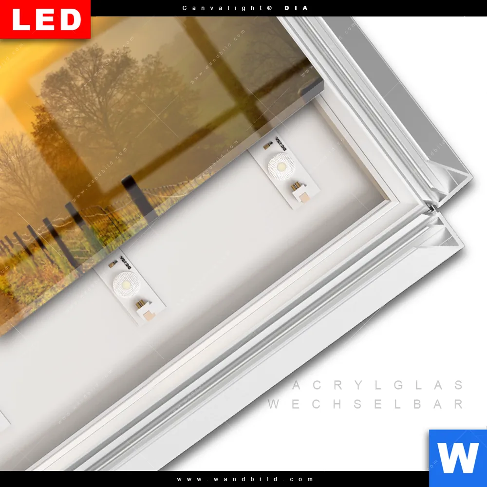 LED-Glasbild mit austauschbarem Acrylglas-Druck (Wechselbild)