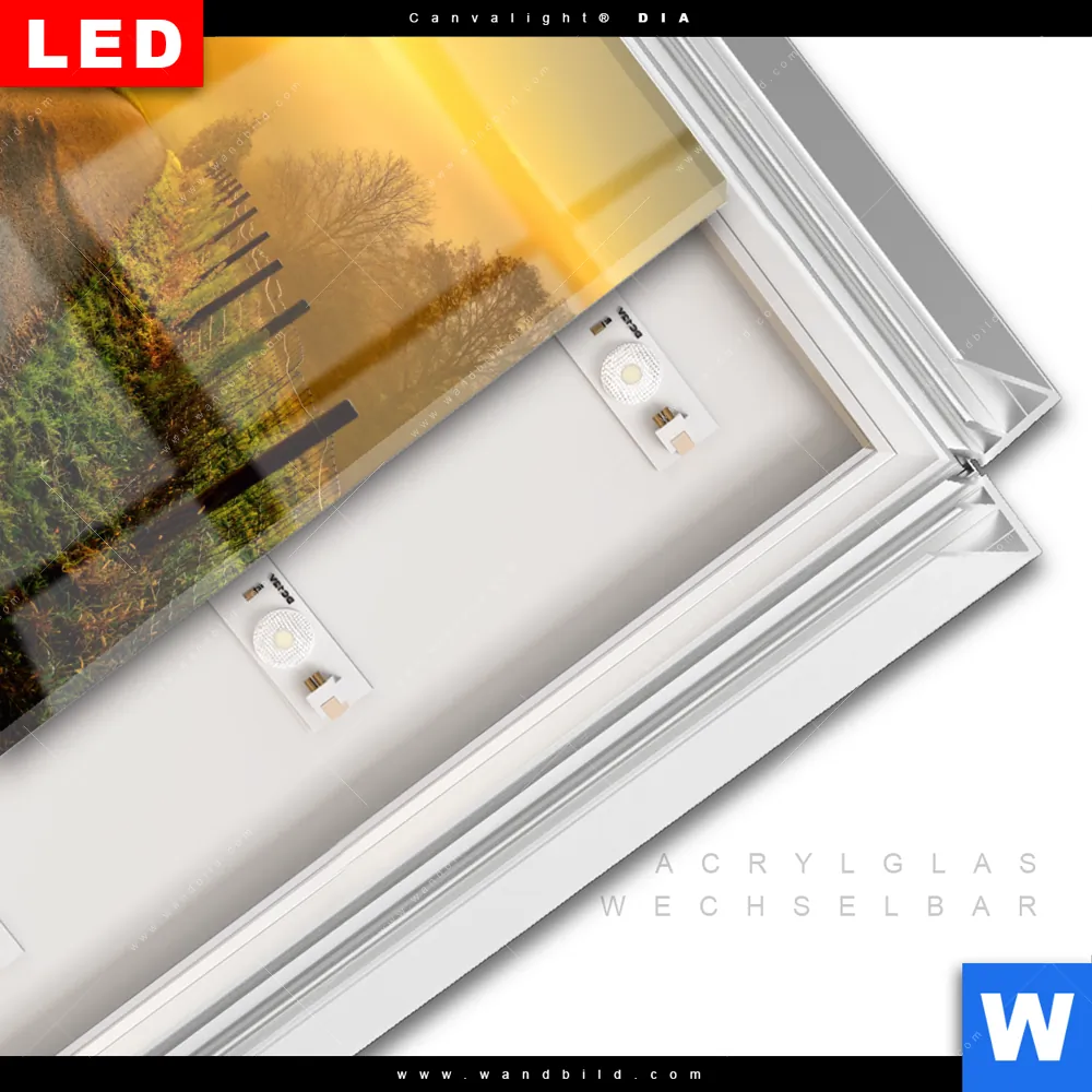 LED-Glasbild mit austauschbarem Acrylglas-Druck (Wechselbild)