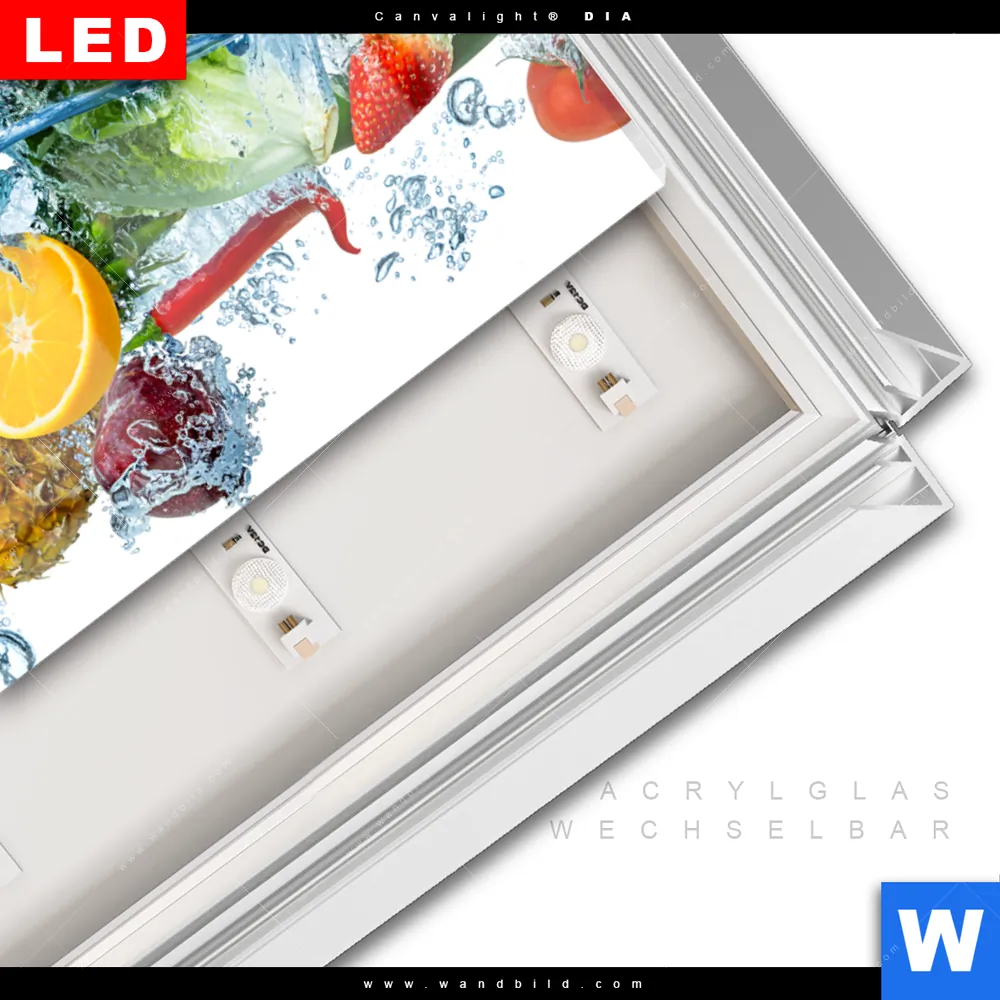 LED-Glasbild mit austauschbarem Acrylglas-Druck (Wechselbild)