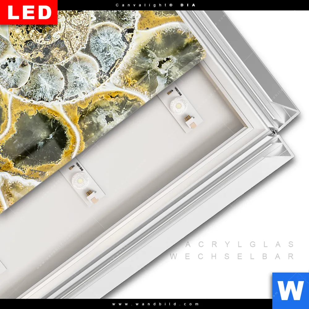 LED-Glasbild mit austauschbarem Acrylglas-Druck (Wechselbild)