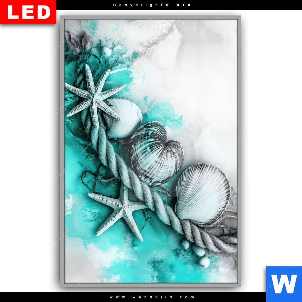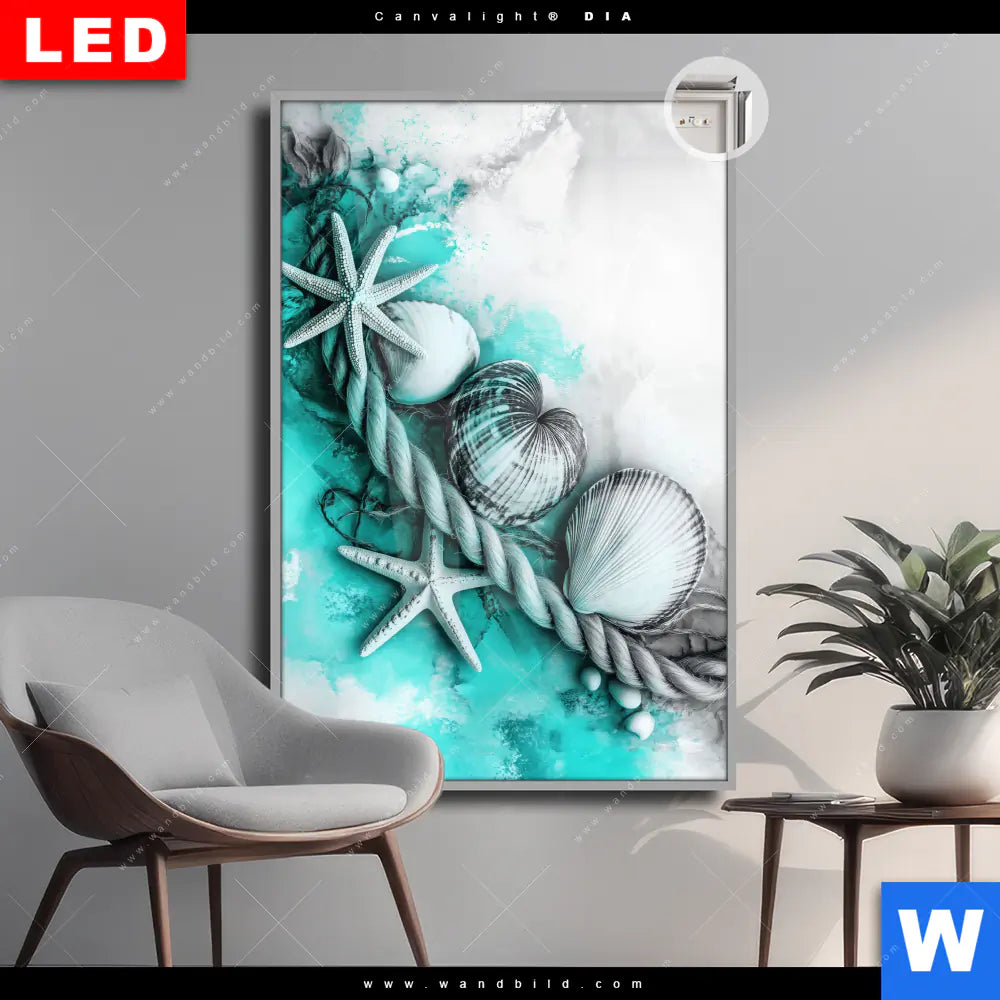 Canvalight® DIA Leuchtbild | Muscheln-Meereszauber in Türkis | Hochformat