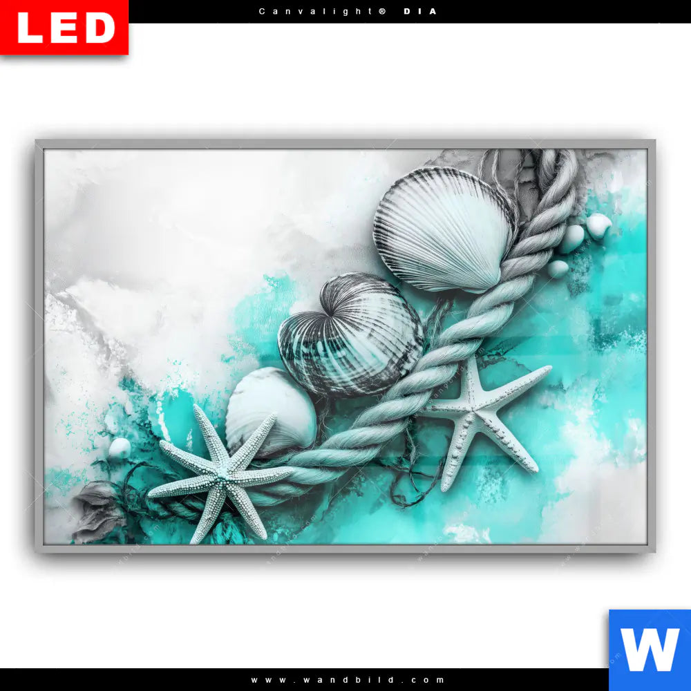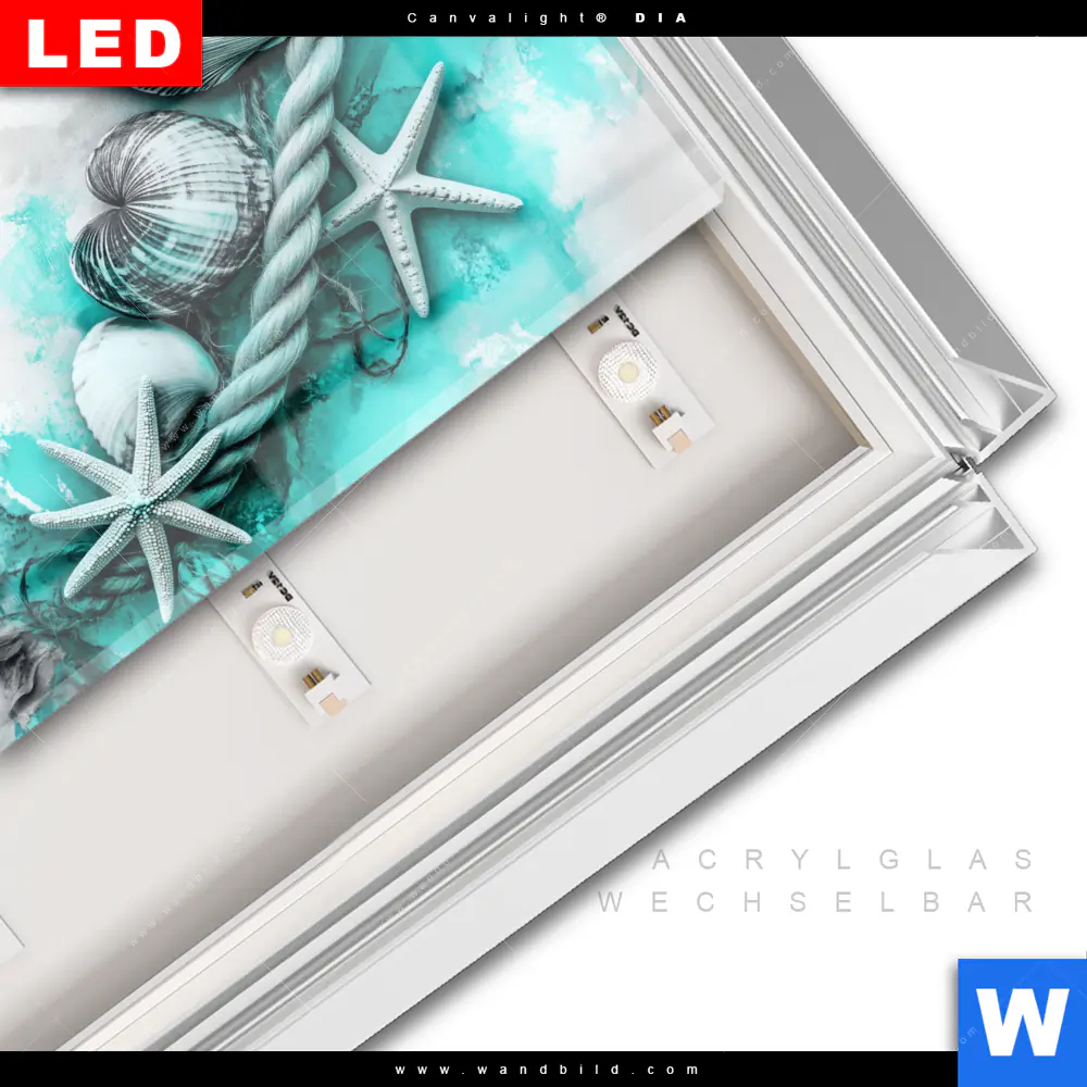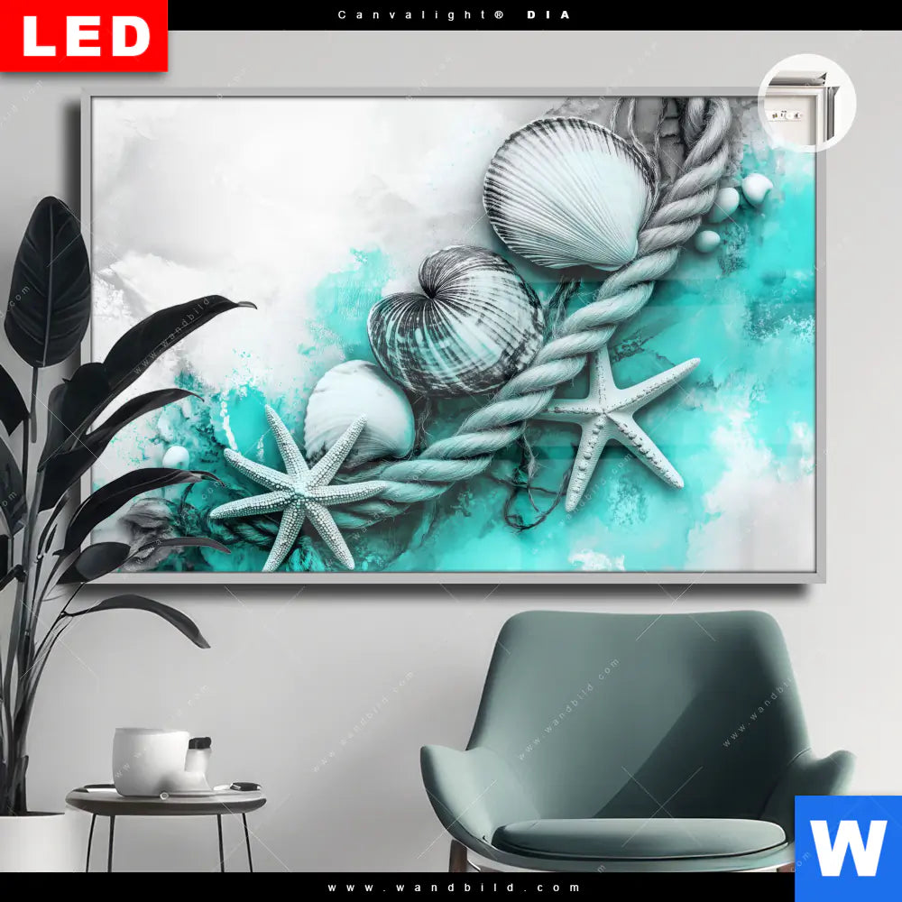 Canvalight® DIA Leuchtbild | Muscheln-Meereszauber in Türkis | Querformat