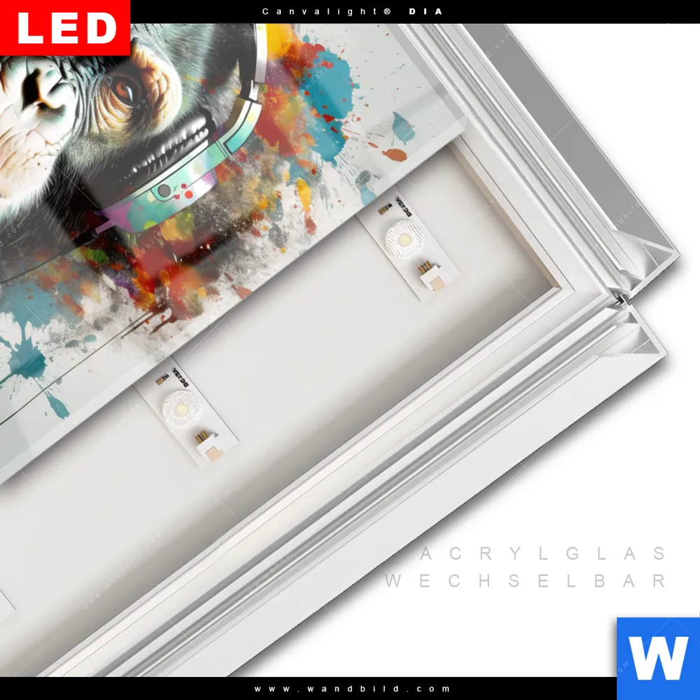 Canvalight® DIA Leuchtbild | Musikalischer Affe | Quadrat