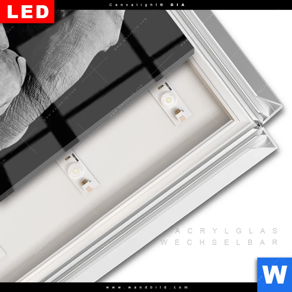 LED-Glasbild mit austauschbarem Acrylglas-Druck (Wechselbild)