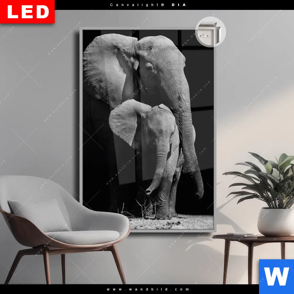 Canvalight® DIA Leuchtbild | Mutter & Baby Elefant | Hochformat