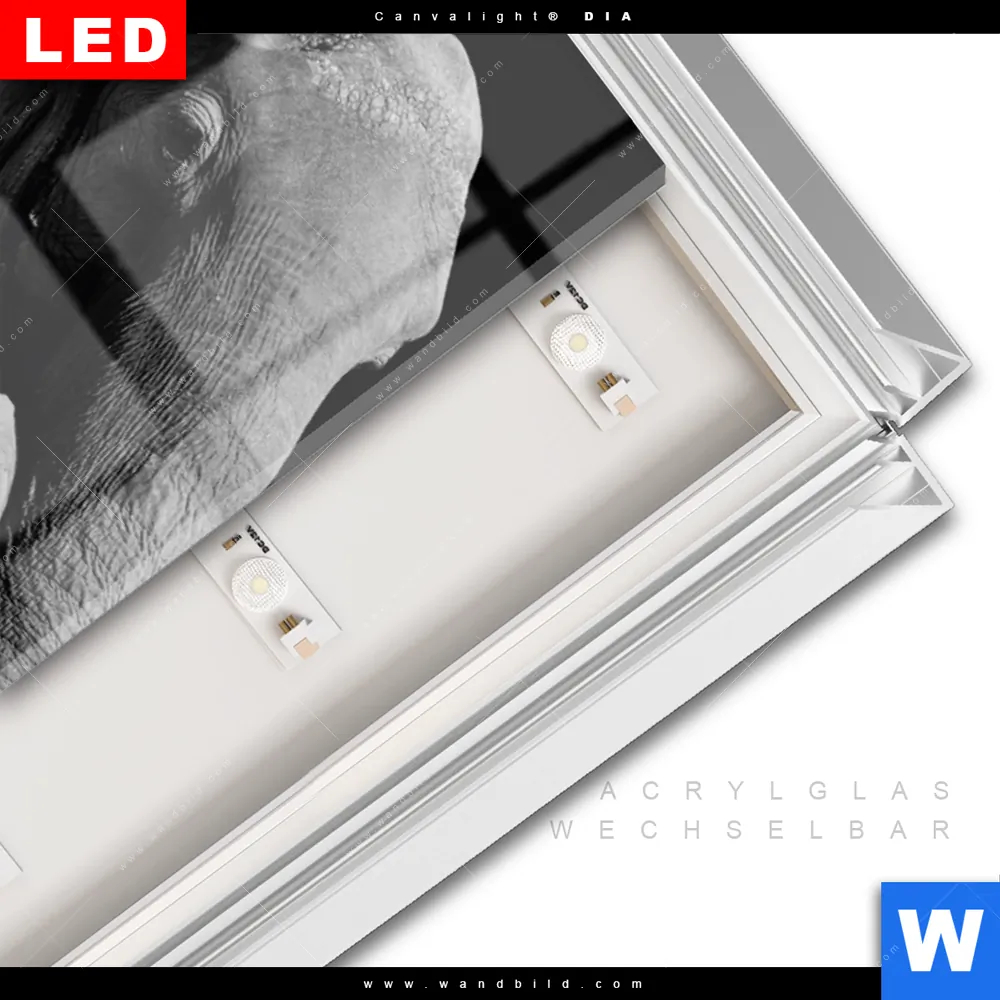 LED-Glasbild mit austauschbarem Acrylglas-Druck (Wechselbild)