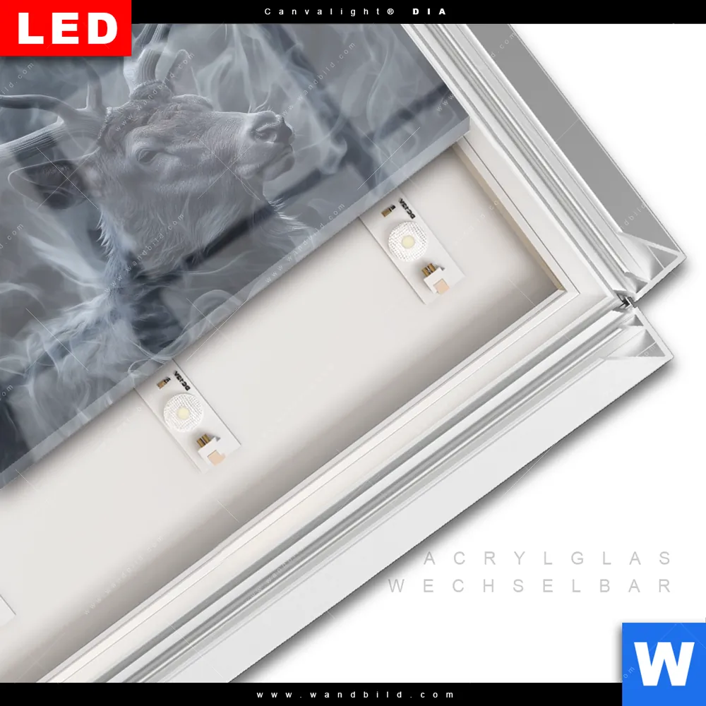 LED-Glasbild mit austauschbarem Acrylglas-Druck (Wechselbild)