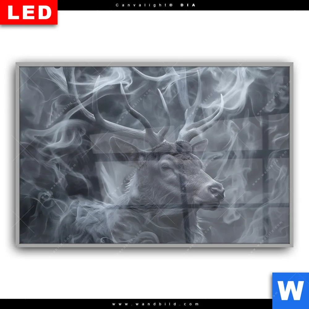 Canvalight® DIA Leuchtbild | Mystischer Hirsch im Nebel | Querformat