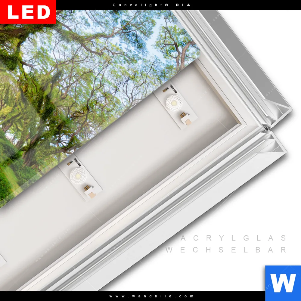 LED-Glasbild mit austauschbarem Acrylglas-Druck (Wechselbild)
