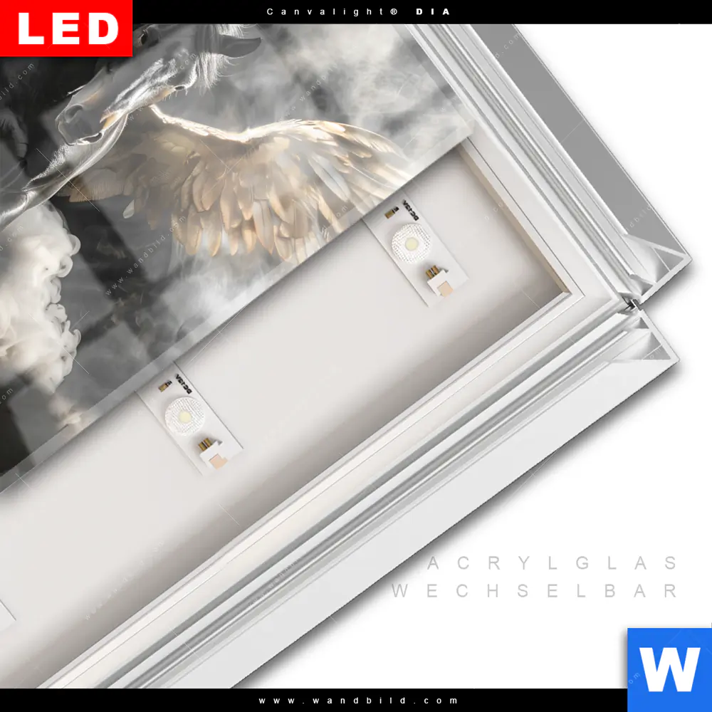 LED-Glasbild mit austauschbarem Acrylglas-Druck (Wechselbild)