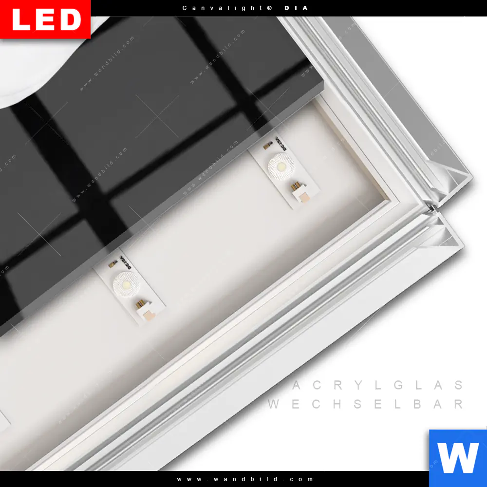 LED-Glasbild mit austauschbarem Acrylglas-Druck (Wechselbild)