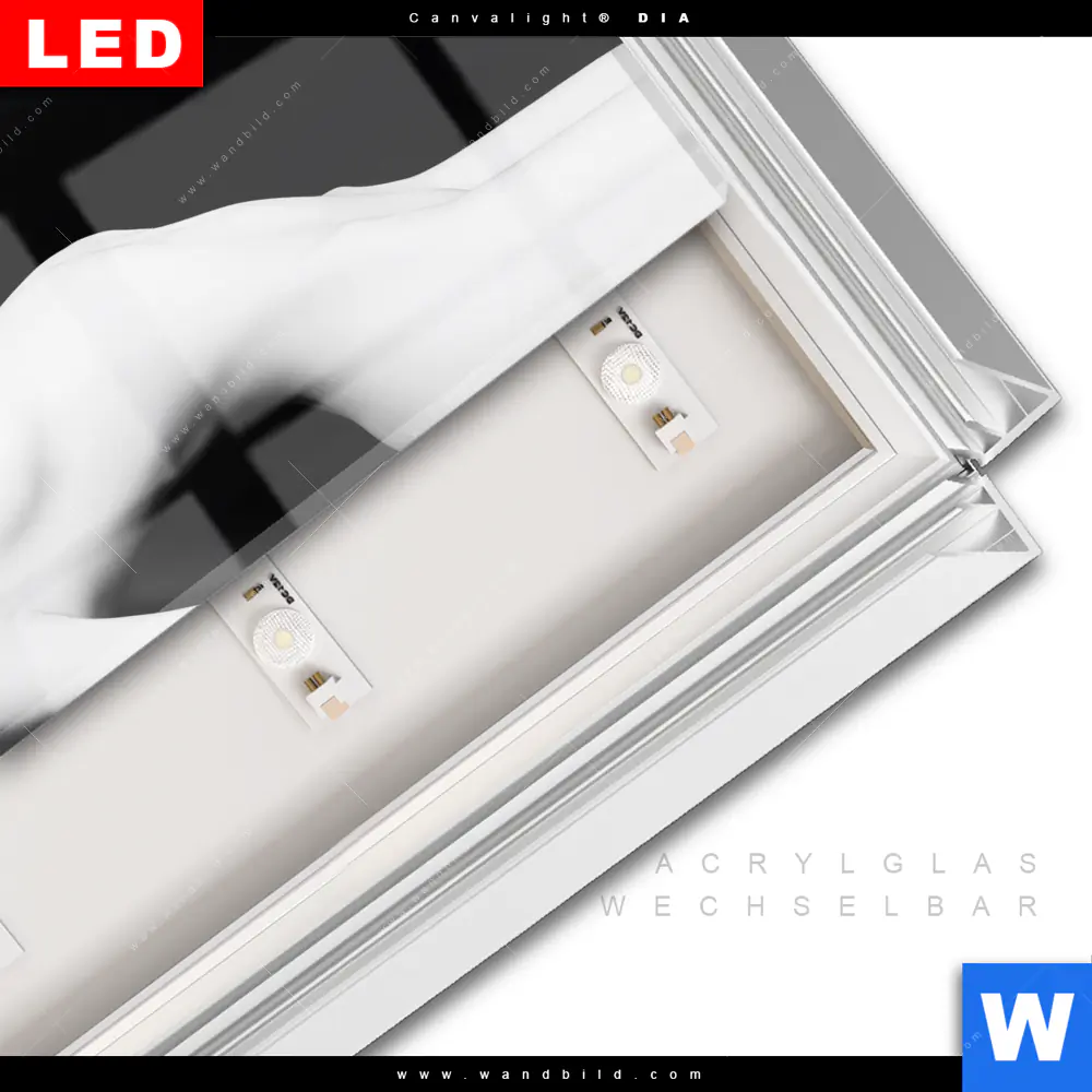 LED-Glasbild mit austauschbarem Acrylglas-Druck (Wechselbild)