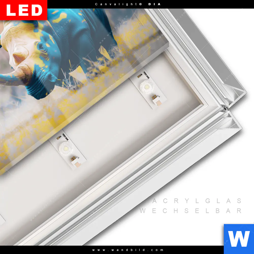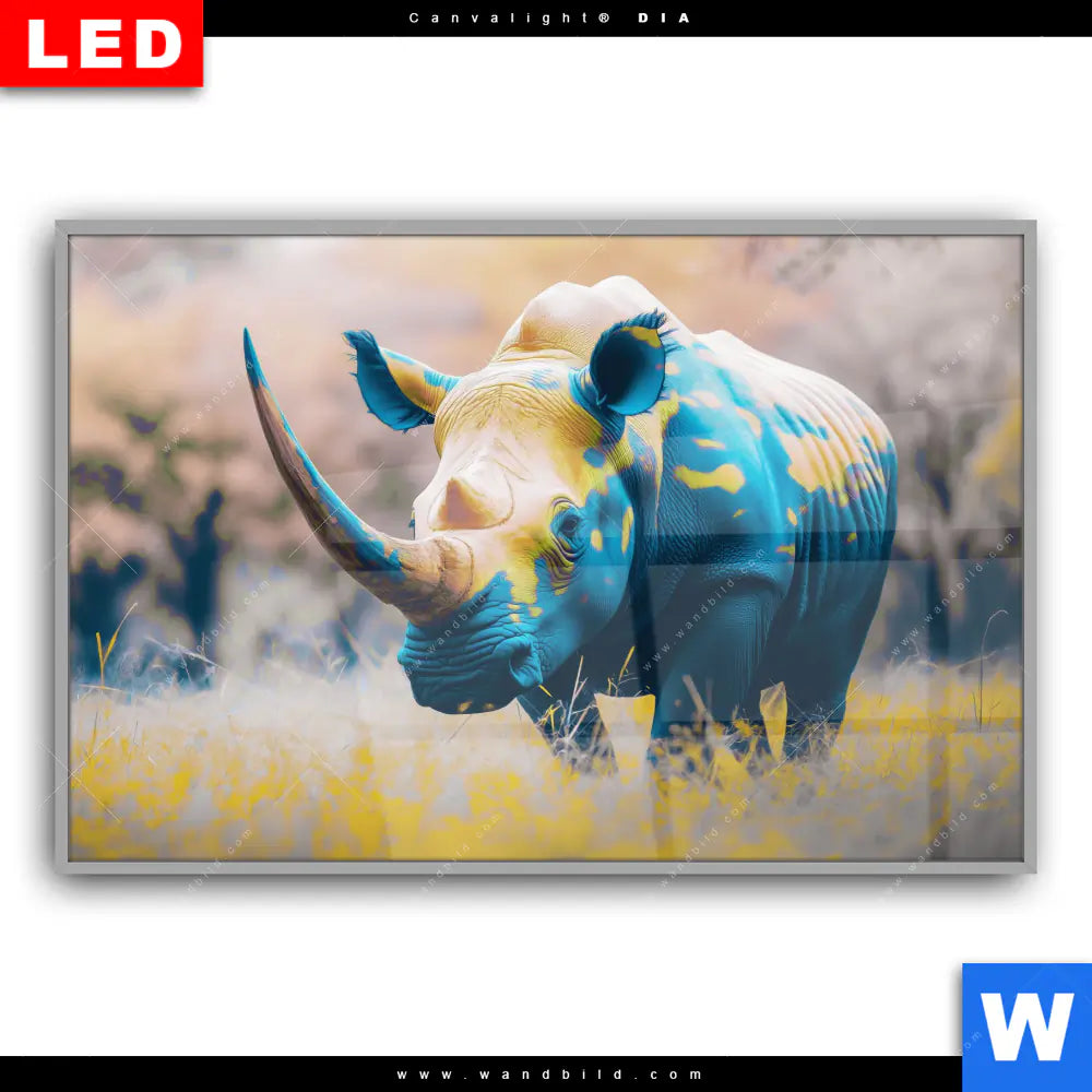 Canvalight® DIA Leuchtbild | Nashorn - Farben der Wildness | Querformat