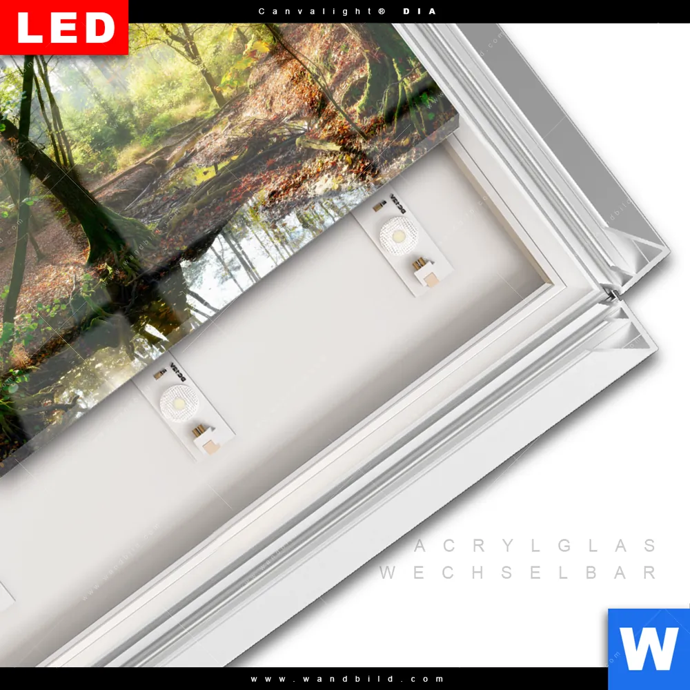 LED-Glasbild mit austauschbarem Acrylglas-Druck (Wechselbild)