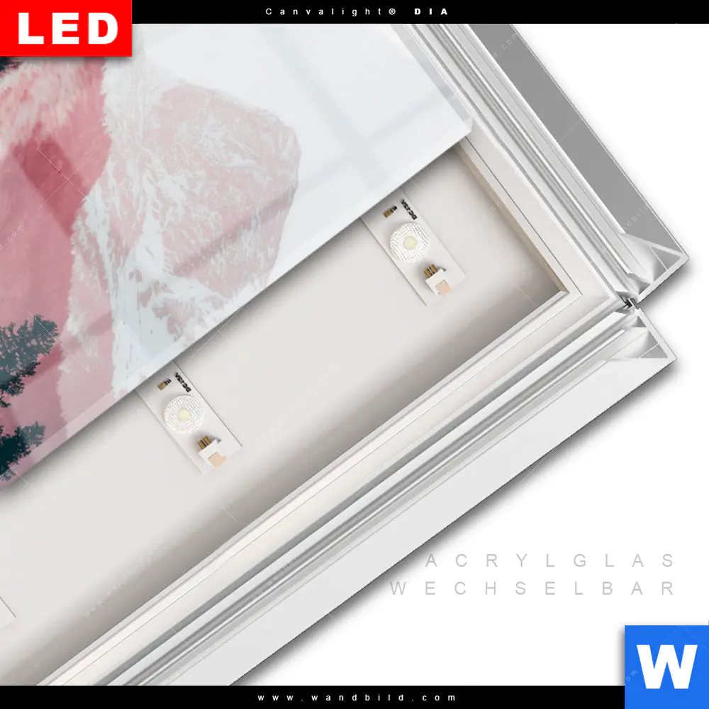 LED-Glasbild mit austauschbarem Acrylglas-Druck (Wechselbild)