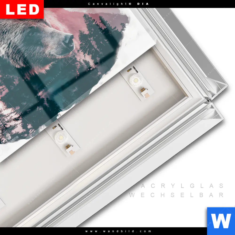 LED-Glasbild mit austauschbarem Acrylglas-Druck (Wechselbild)