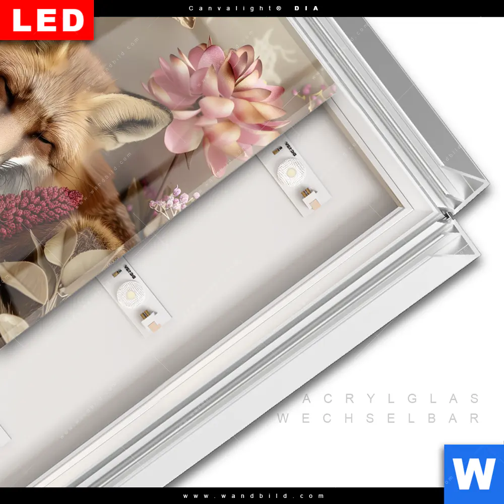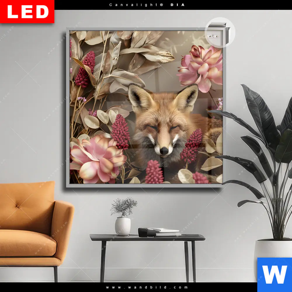 Canvalight® DIA Leuchtbild | Naturbild Fuchs und Blumen | Quadrat