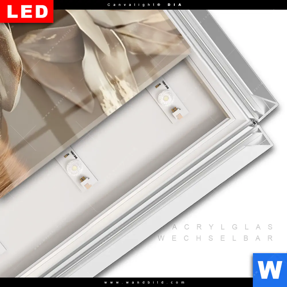 LED-Glasbild mit austauschbarem Acrylglas-Druck (Wechselbild)