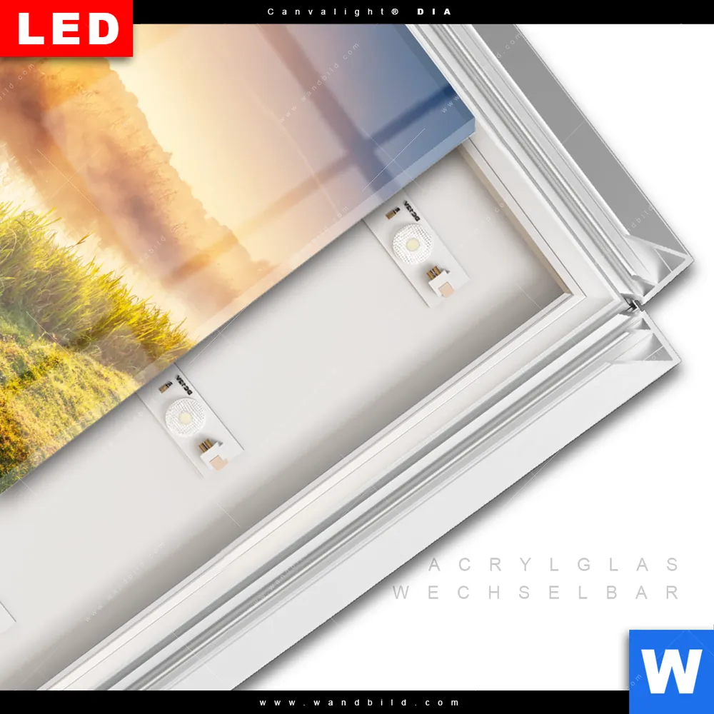 LED-Glasbild mit austauschbarem Acrylglas-Druck (Wechselbild)