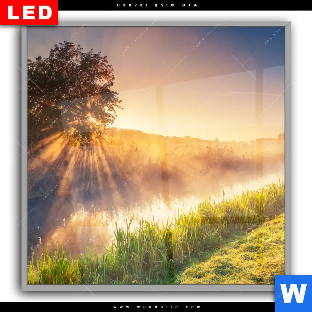 Canvalight® DIA Leuchtbild | Nebel am Fluss | Quadrat