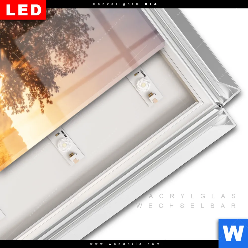 LED-Glasbild mit austauschbarem Acrylglas-Druck (Wechselbild)