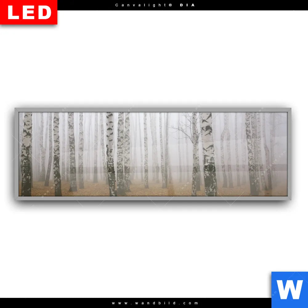 Canvalight® DIA Leuchtbild | Nebel im Birkenwald | Panorama