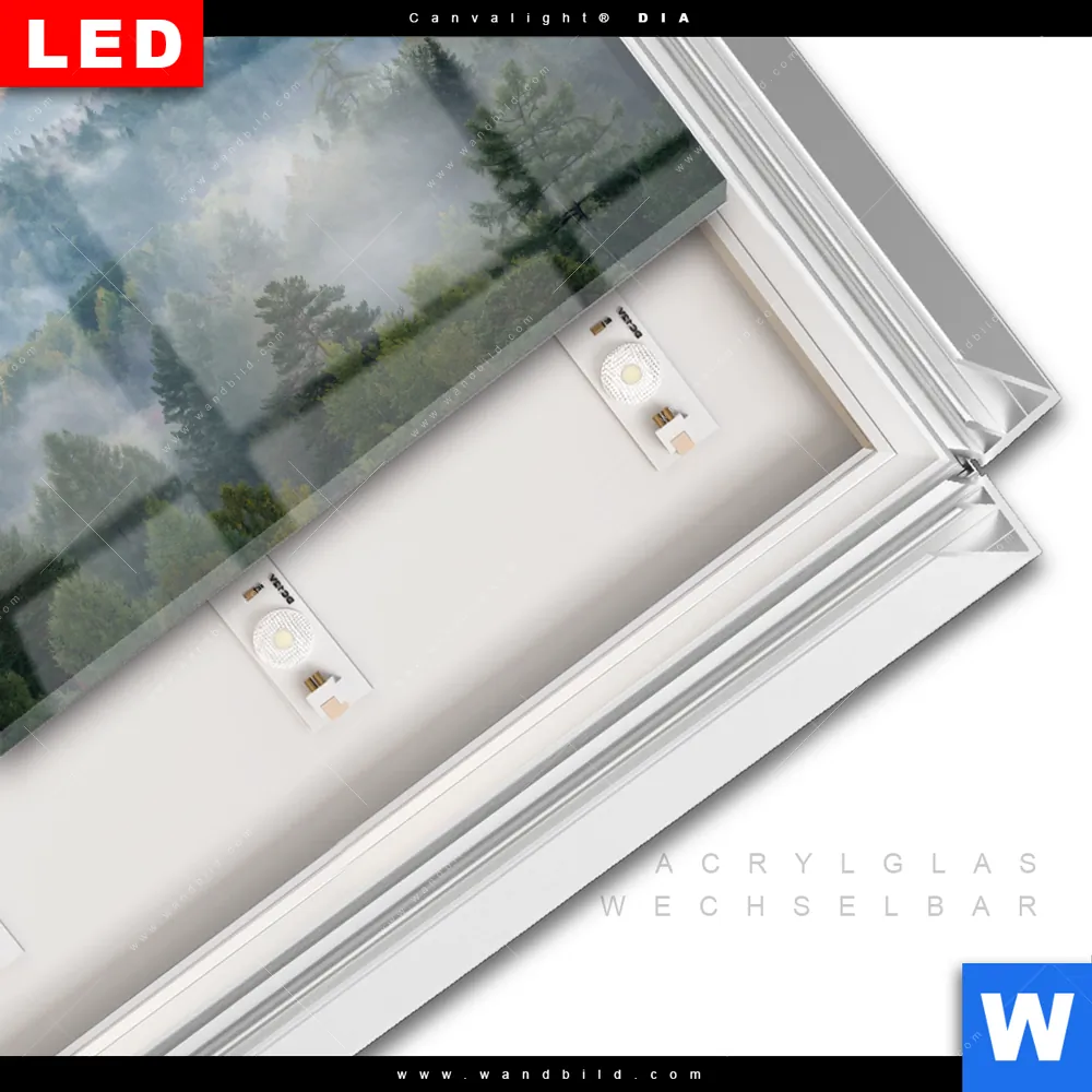 LED-Glasbild mit austauschbarem Acrylglas-Druck (Wechselbild)